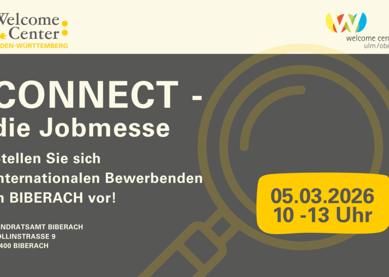 Das Welcome Center Ulm/Oberschwaben unterstützt Sie, ausländische Mitarbeitende erfolgreich zu gewinnen und zu integrieren. Wir sind bereits seit 2014 zentrale Anlaufstelle und bieten umfassende Beratungs- und Serviceleistungen, um den Fachkräftemangel in der Region zu mindern und eine Willkommenskultur zu fördern.